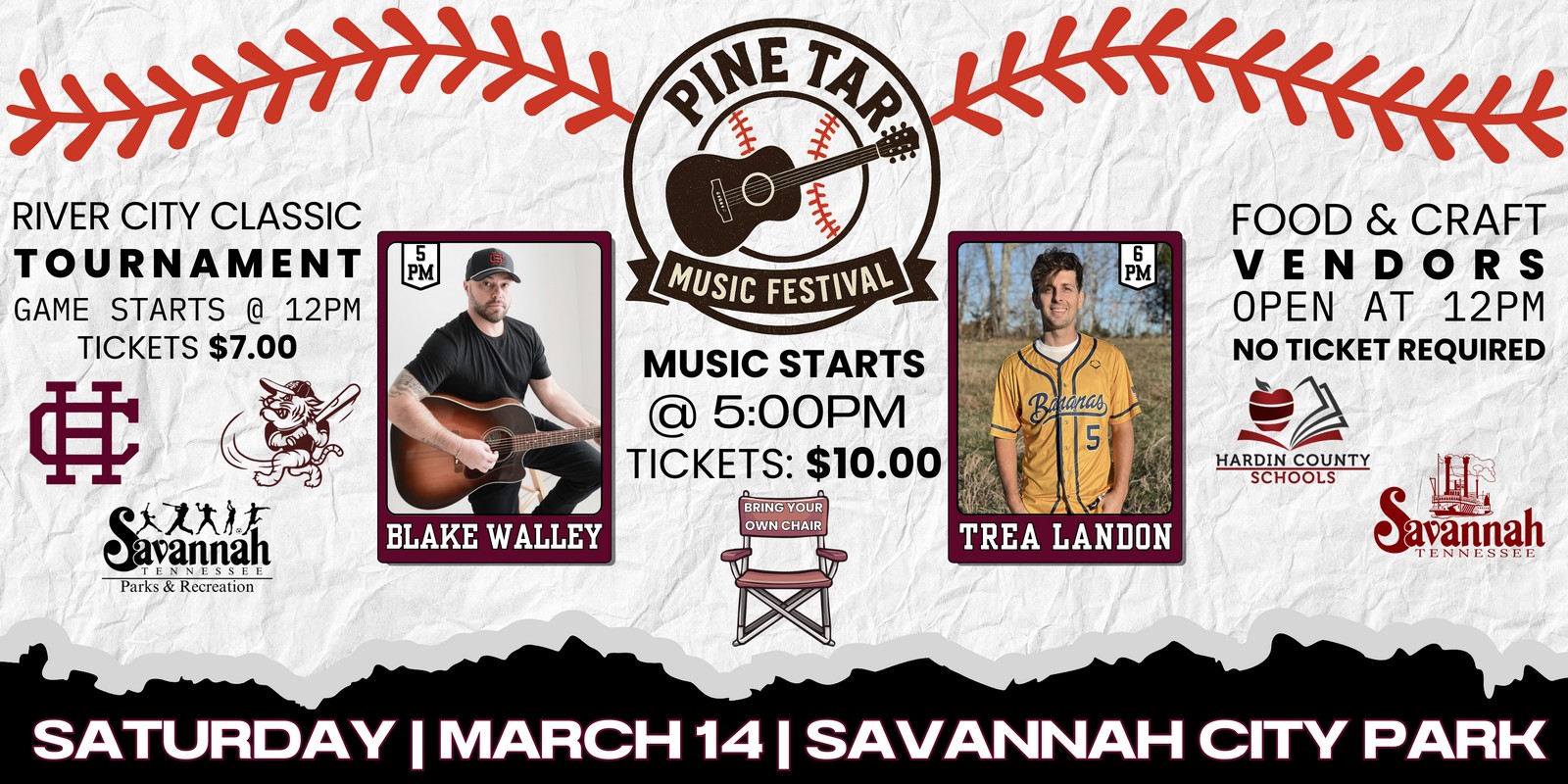 Join us for a full day of baseball, live music, food, and community fun at Savannah City Park on Saturday, March 14.